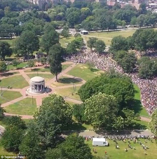 In this production you only see the bad guys from a distance. It isn’t as if liberal media wouldn’t like to give us close shots of Real Live Nazis. Unite the Right gave it to them. They must have been hugely disappointed in Boston.