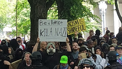Here in Portland we had a similar standoff, when another alt right group held a “free speech rally” across from City Hall June 4.