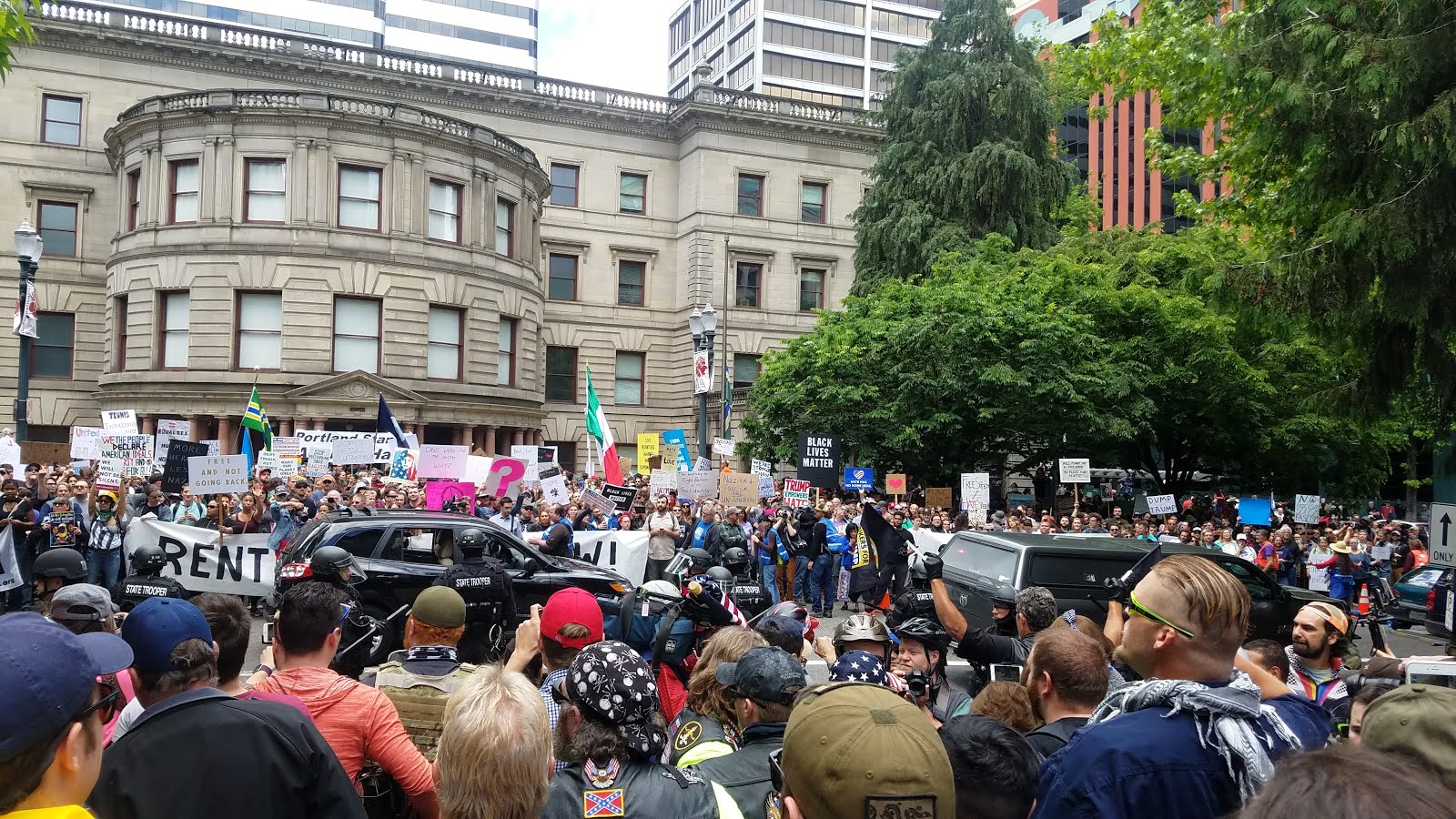 Here in Portland we had a similar standoff, when another alt right group held a “free speech rally” across from City Hall June 4.
