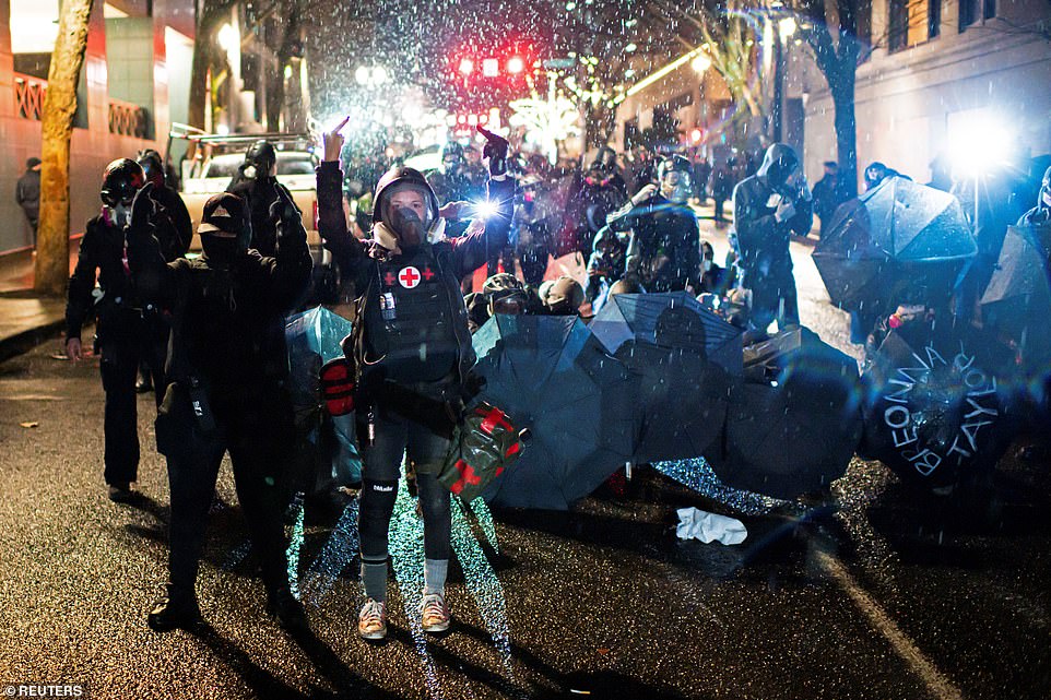 The crowd of demonstrators in Portland are actively pushing back the DHS. pic.twitter.com/IdF8L9JLIz